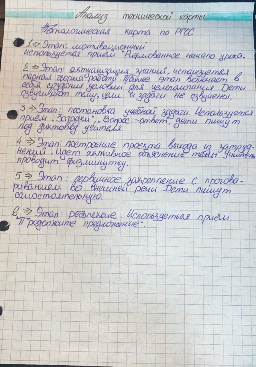 Анализ технологической карты урока